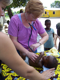 On our third day in Liberia, we were up before the sun, ate breakfast and headed out of town on a 5 hour drive to Pastor Peter's village. This is a very remote village about 4 hours out, then we 'four wheel' in a few miles, then walk the rest of the way. We had planned this for a medical outreach day, knowing from our last visit that we weren't prepared for all the illness we encountered. So we did bring supplies to treat what we could. Tracey, a Nurse Practitioner, Josephus and Denise both nurses, were able to diagnose and treat more than 60 adults and children! They ROCKED!!! Some of the things diagnosed were...Intestinal Worms, Malaria, ear infections and Bronchitis. This team of 3 were amazing!! Thank You Tracey, Josephus and Denise!!