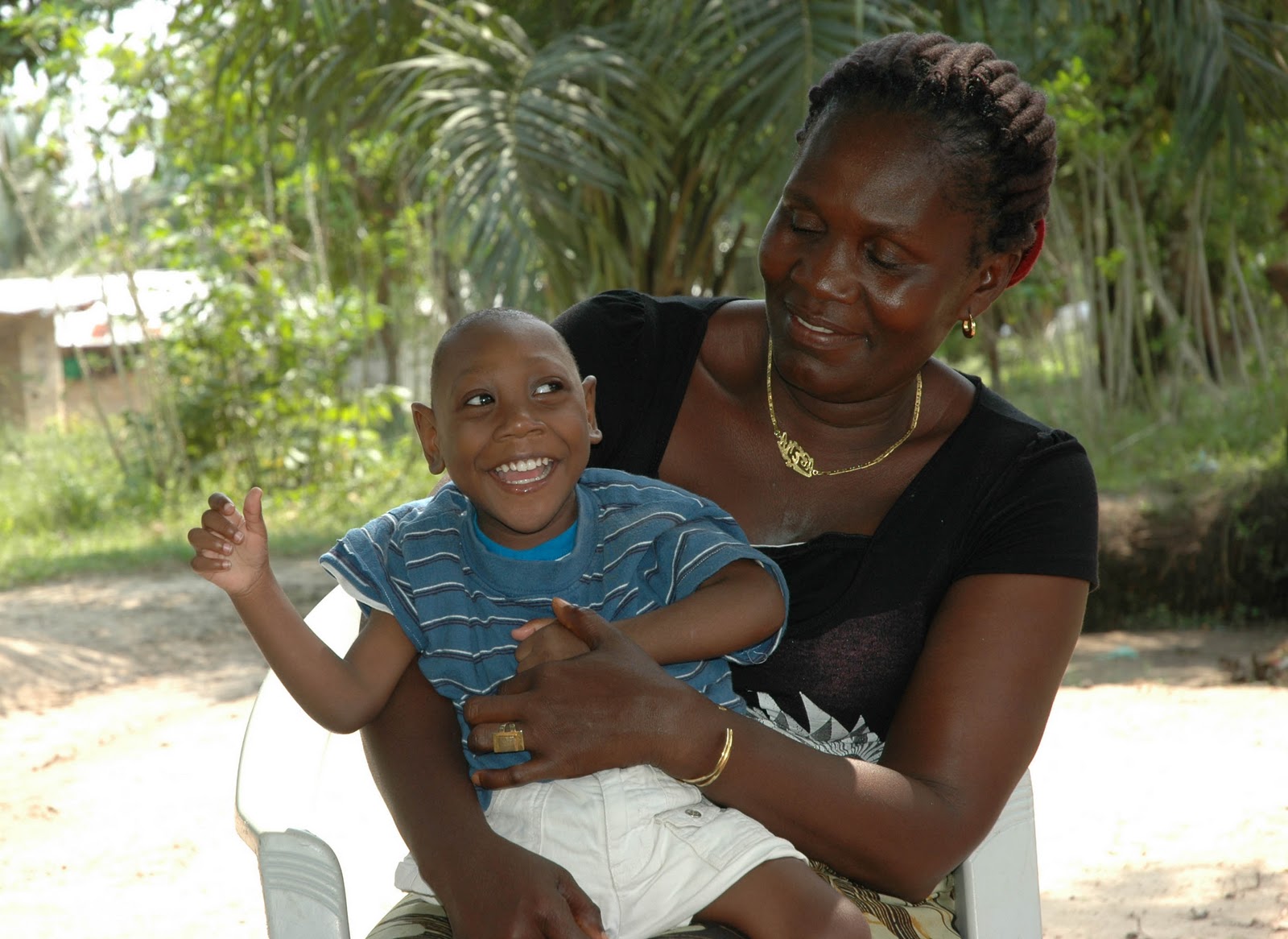 Junior is still afraid of us white people...but getting a little relaxed around us. He is getting really strong and can stand with assistance. He truly loves his foster mom and will smile when we aren't looking!